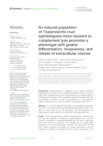 An induced population of Trypanosoma cruzi epimastigotes more resistant to complement lysis promotes a phenotype with greater differentiation, invasiveness, and release of extracellular vesicles