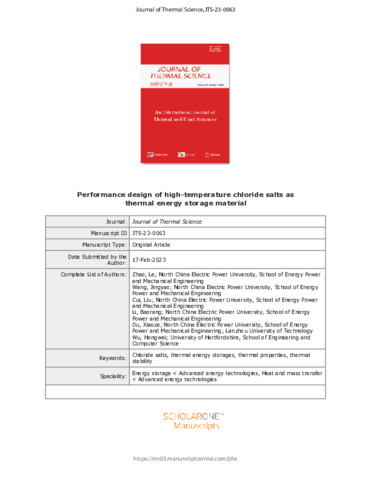 | Keywords | chloride salts, thermal energy storages, thermal properties, thermal stability, condensed matter physics |