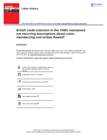 British trade unionism in the 1980s reassessed. Are recurring assumptions about union membership and strikes flawed?