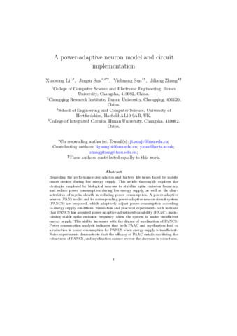 Regarding the performance degradation and battery life issues faced by mobile smart devices during low energy supply. This article thoroughly explores the strategies employed by biological neurons to stabilize spike emission frequency and reduce power consumption during low energy supply, as well as the characteristics of myelin sheath in reducing power consumption. A power-adaptive neuron model and its corresponding power-adaptive neuron circuit system (PANCS) are proposed, which adaptively adjust power consumption according to energy supply conditions. Simulation and practical experiments both indicate that PANCS has acquired power-adaptive adjustment capability (PAAC), maintaining stable spike emission frequency when the system is under insufficient energy supply. This ability increases with the degree of myelination of PANCS. Power consumption analysis indicates that both PAAC and myelination lead to a reduction in power consumption for PANCS when energy supply is insufficient. Noise experiments demonstrate that the efficacy of PAAC entails sacrificing the robustness of PANCS, and myelination cannot reverse the decrease in robustness. Research findings of this paper endow neural morphology networks with the ability to adaptively adjust power consumption according to energy supply conditions to cope with extreme situations, providing new insights for the development of AI.