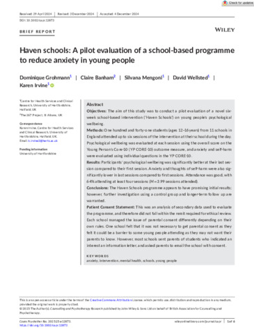 Haven Schools: A pilot evaluation of a school-based programme to reduce anxiety in young people