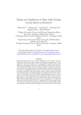 | Keywords | algae, memristor, neuron model, sensing circuit, spiking camera, control and systems engineering, aerospace engineering, ocean engineering, mechanical engineering, electrical and electronic engineering, applied mathematics |