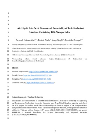 | Keywords | interfacial tension · surfactants · foamability · tio2 nanoparticles · adsorption · foam-forming materials · nanostructure, adsorption, foamability, interfacial tension, foam-forming materials, tio nanoparticles, nanostructure, surfactants, bioengineering, atomic and molecular physics, and optics, general chemistry, modelling and simulation, general materials science, condensed matter physics |
