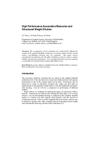 High Performance Associative Memories and Structured Weight Dilution.