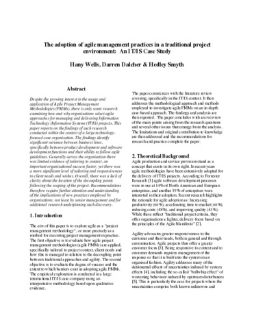 The Adoption of Agile Management Practices in a Traditional Project Environment : An IS/IT Case Study