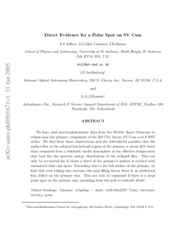 Direct Evidence for a Polar Spot on SV Camelopardalis.