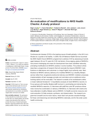 An evaluation of modifications to NHS Health Checks: A study protocol