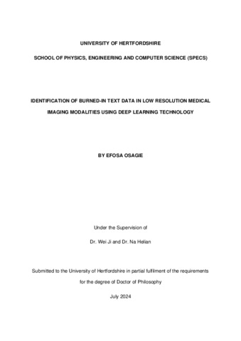 Identification of Burned-in Text Data in Low Resolution Medical Imaging Modalities using Deep Learning Technology