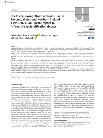 Deaths following illicit ketamine use in England, Wales and Northern Ireland 1999-2024: An update report to inform the reclassification debate