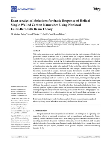 Exact Analytical Solutions for Static Response of Helical Single-Walled Carbon Nanotubes Using Nonlocal Euler–Bernoulli Beam Theory