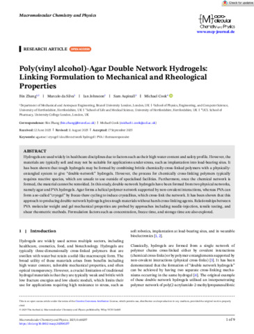 Poly(vinyl alcohol)-Agar Double Network Hydrogels: Linking Formulation to Mechanical and Rheological Properties.