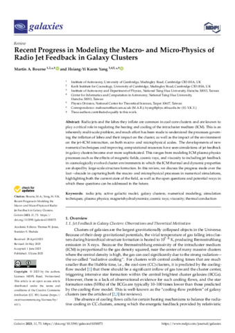 Keywords | active galactic nuclei, cosmic rays, galaxy clusters, magnetohydrodynamics, numerical modeling, plasma physics, radio jets, simulation techniques, thermal conduction, viscosity, astronomy and astrophysics |