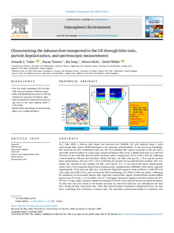 | Keywords | saharan dust; long-range transport; lidar ratio; particle linear depolarization ratio; raman spectra, spectroscopic lidar |