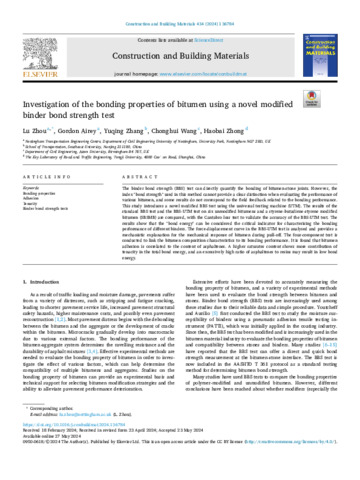 Investigation of the bonding properties of bitumen using a novel modified binder bond strength test