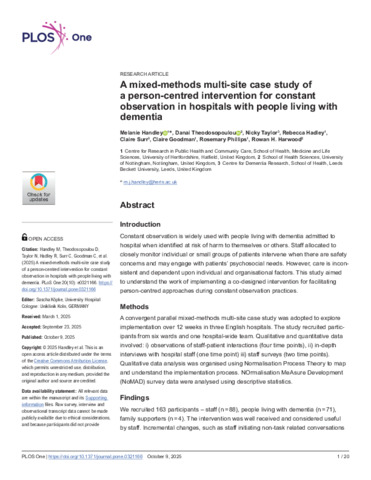 A mixed-methods multi-site case study of a person-centred intervention for constant observation in hospitals with people living with dementia