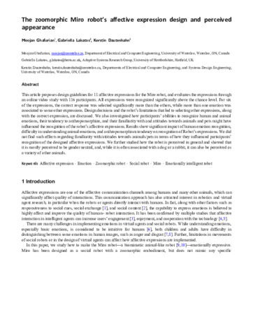 The Zoomorphic Miro Robot’s Affective Expression Design and Perceived Appearance