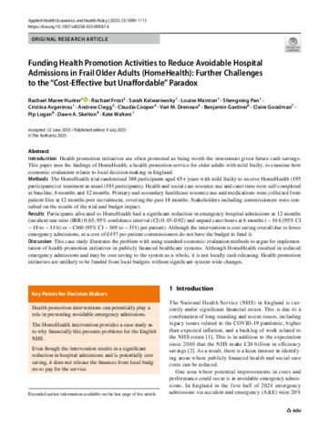 Funding Health Promotion Activities to Reduce Avoidable Hospital Admissions in Frail Older Adults (HomeHealth): Further Challenges to the “Cost-Effective but Unaffordable” Paradox : When Health Promotion is Cost Saving but Unaffordable: A Case Study in Frailty (HomeHealth)