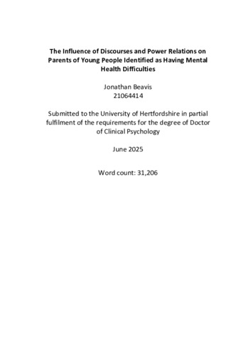 The Influence of Discourses and Power Relations on Parents of Young People identified as having Mental Health Difficulties
