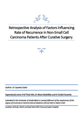 | Keywords | non-small cell lung cancer (nsclc), nsclc, prognostic factors,post-surgical recurrence, recurrence rate, recurrence, surveillance and follow-up, local recurrence, distant metastasis, demography, comorbidities, smoking status, age, gender, smoking, adenocarcinoma, genetic mutations, previous cancer, squamous cell carcinoma, tumour location, residual tumour status, resection margin, mixed phenotype, large cell carcinoma,bilateral synchronous tumours, tumour stages, vpi (vascular perineural invasion), tumour factors, histology, tumour staging, surgical factors, resection margin, adjuvant therapy, lobectomy, surgical resection, sub-lobar wedge resection, pneumonectomy, mediastinal dissection, nodal sampling, vats, open thoracotomy, adjuvant therapy, chemotherapy, radiotherapy, univariate analysis, multivariate analysis, logistic regression, observational study |