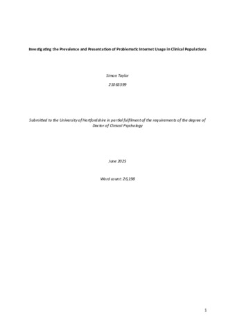 | Keywords | problematic internet use; internet; mental health; clinical populations |