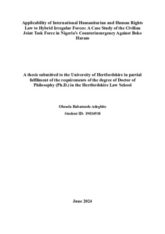 Applicability of International Humanitarian and Human Rights Law to Hybrid Irregular Forces: a Case Study of the Civilian Joint Task Force in Nigeria's Counterinsurgency Against Boko Haram