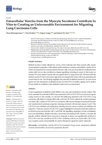 Extracellular Vesicles from the Myocyte Secretome Contribute In Vitro to Creating an Unfavourable Environment for Migrating Lung Carcinoma Cells