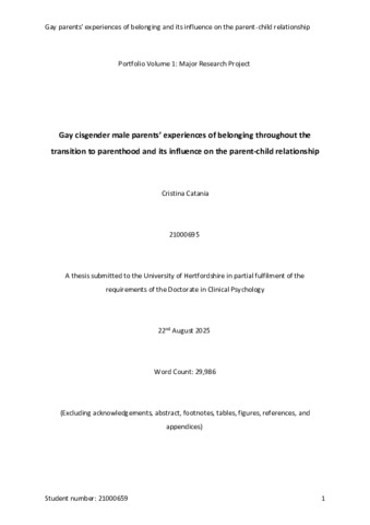 Gay Cisgender Male Parents’ Experiences of Belonging throughout the Transition to Parenthood and its Influence on the Parent-Child Relationship
