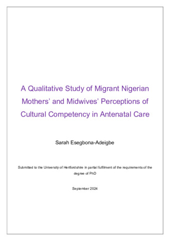 A Qualitative Study of Migrant Nigerian Mothers' and Midwives' Perceptions of Cultural Competency in Antenatal Care