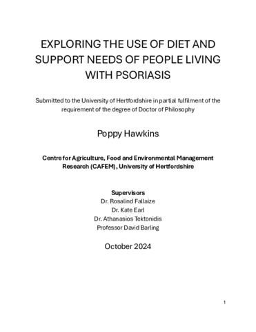 Background Psoriasis is a chronic immune-mediated skin condition affecting approximately 60 million people globally. It is associated with substantial comorbidities, and while lifestyle factors may help manage psoriasis, research on the use and effectiveness of diet remains limited, particularly in the UK. With approximately 2% of adults living with psoriasis in the UK, this represents an important knowledge gap. This thesis aims to explore the role of diet in psoriasis management, to enhance our understanding of how to support people living with psoriasis (PLwP) in the UK. Methods A mixed-methods sequential design was used, and 4 studies were undertaken. Firstly, a scoping review was conducted to provide a comprehensive overview of the current evidence. To explore the dietary experiences of PLwP in the UK both qualitative and quantitative methods were utilised. Given the limited research thematic analysis of qualitative interviews was conducted to gain initial insights into the dietary modifications and experiences of PLwP in the UK. Based on these findings, a cross-sectional questionnaire was developed to quantitively explore the dietary modifications, skin responses, patient experiences, and information acquisition, among a larger population. The data from the first 3 studies informed the development of a dietary support guide for PLwP utilising a user-centered design (UCD) approach, incorporating think aloud methodology; its usability was evaluated using the System Usability Scale. Results The scoping review revealed that randomized control trials (RCTs) support low-calorie diets for those living with overweight or obesity and gluten-free diets for those with coeliac disease, to improve psoriasis. Further evidence is limited, and patient information rarely provides dietary support. Research on dietary use and experiences of PLwP has not been explored in the UK. Interviews with PLwP in the UK (n=9) revealed that most believed diet affected their psoriasis and tried restrictive diets, with limited success. Participants commonly sought dietary information online due to perceived lack of support from healthcare professionals (HCPs). The subsequent cross-sectional questionnaire (n=271) revealed that 47.2% of PLwP reported making a dietary modification to help their psoriasis. Common restrictions included high-sugar foods (64.1%) and dairy (63.3%). Participants with severe psoriasis (OR 2.268; p=0.027), aged 18-44 (OR 2.050; p=0.007), psoriatic arthritis (OR 2.754; p=0.003), or gluten sensitivity (OR 3.579; p=0.004) were more likely to have tried a dietary modification compared to those without these characteristics. Most (61.3%) changed their diet to also improve overall health, and (53.6%) wanted more dietary support. The dietary support guide was developed with an expert panel (n=7), and intended users (n=7). The final guide was evaluated as having good usability and was perceived to be useful and valuable by intended users (n=27). Conclusion Dietary modification is common among PLwP in the UK, primarily motivated by a desire to improve psoriasis and overall health. However, the majority of dietary modifications undertaken are unsubstantiated and restrictive. There is a need and desire for dietary support for PLwP. This thesis makes a notable contribution to patient-centred psoriasis care by directly addressing the identified dietary support gap, through the development of an evidence-based dietary support guide for PLwP. The involvement of PLwP and stakeholders in the development ensured it was usable and valuable to PLwP. Future research should assess the use and impact of the dietary support guide, and its value to HCPs. Additionally, larger, long-term studies to explore the impact of diet on psoriasis, and exploration of how nutritional support can be integrated into psoriasis care is needed.