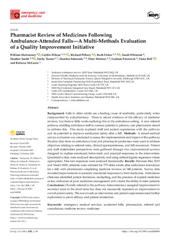 | Keywords | emergency medical services, accidental falls, pharmacists, referral and consultation, medicine review, medicines |