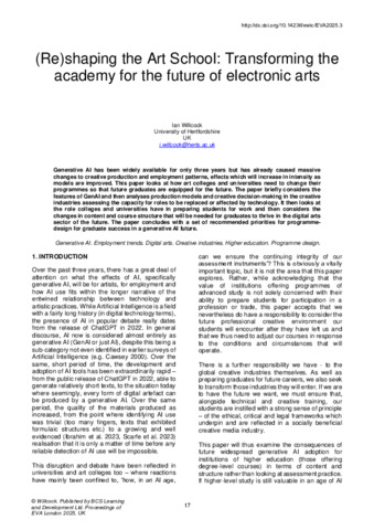 | Keywords | generative ai. employment trends, programme design, higher education, creative industries, digital arts |
