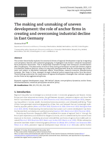 The making and unmaking of uneven development: The role of anchor firms in creating and overcoming industrial decline in East Germany