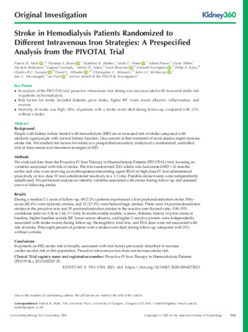 Stroke in Hemodialysis Patients Randomized to Different Intravenous Iron Strategies : A Prespecified Analysis from the PIVOTAL Trial
