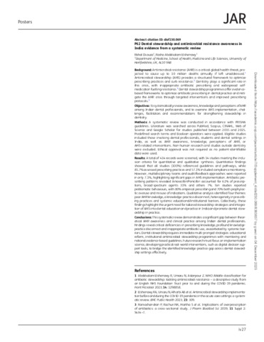 | Keywords | dental antimicrobial stewardship, prevention & control, antimicrobial stewardship, antimicrobial stewardship (ams), antimicrobial stewardship (ams), antimicrobial stewardship (asp) intervention, antimicrobial stewardship programmes, antibiotic prescribing, antibiotic prescribing trends, antibiotic prescribing, antimicrobial resistance, antimicrobial resistance (amr), antimicrobial resistance (amr), antimicrobial resistance (amr), antimicrobial resistance,, dentistry, india, india., epidemiology, indian aerosol plume, amr awareness, amr, amr forecasting, amr governance, amr mitigation strategies, amr surveillance, ams implementation, ams audit, ams in hospitals, ams metrics, ams interventions, ams measures, systematic review, systematic review, systematic reviews, pharmacology (medical), microbiology (medical), medicine(all), health policy |