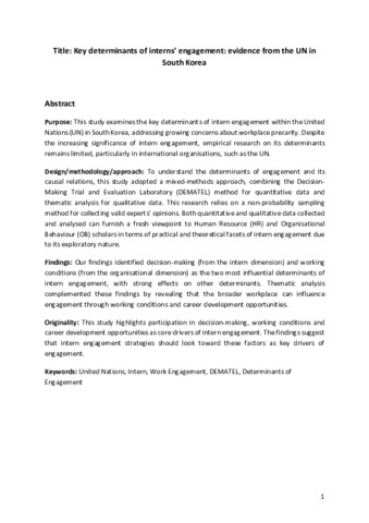 Key determinants of interns’ engagement: evidence from the UN in South Korea