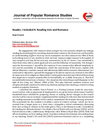Journal of Popular Romance Studies, 13.