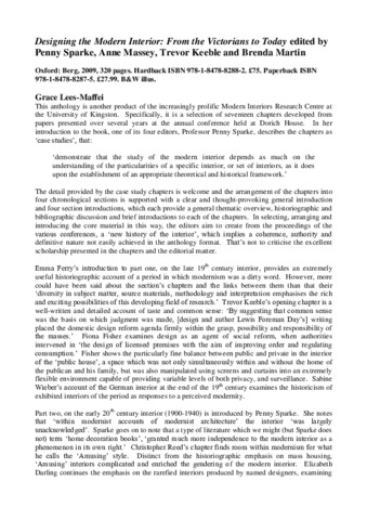 This anthology is another product of the increasingly prolific Modern Interiors Research Centre at the University of Kingston. Specifically, it is a selection of seventeen chapters developed from papers presented over several years at the annual conference held at Dorich House. In her introduction to the book, one of its four editors, Professor Penny Sparke, describes the chapters as ‘case studies’, that: ‘demonstrate that the study of the modern interior depends as much on the understanding of the particularities of a specific interior, or set of interiors, as it does upon the establishment of an appropriate theoretical and historical framework.’
