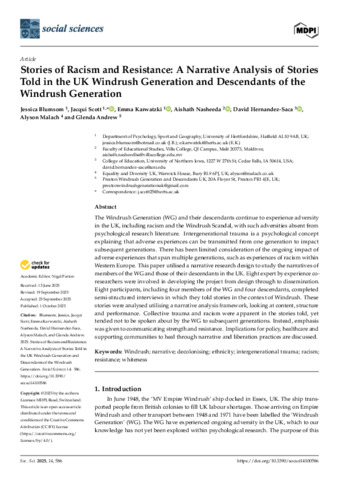 Stories of racism and resistance: A Narrative Analysis of Stories told in the UK Windrush Generation and Descendants of the Windrush Generation