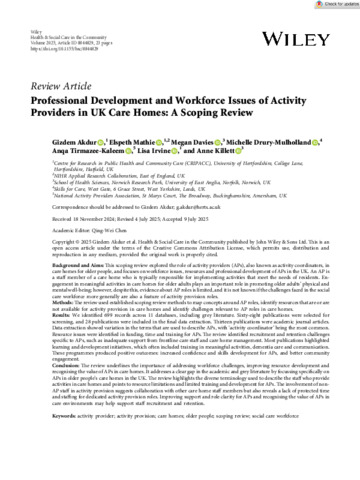 Professional Development and Workforce Issues of Activity Providers in UK Care Homes: A Scoping Review