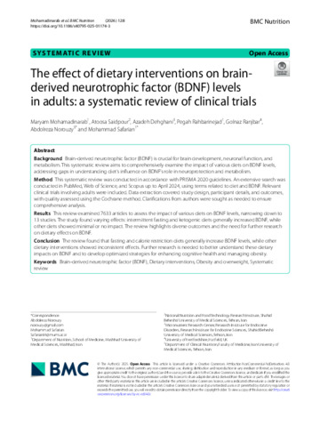 The effect of dietary interventions on brain-derived neurotrophic factor (BDNF) levels in adults: a systematic review of clinical trials