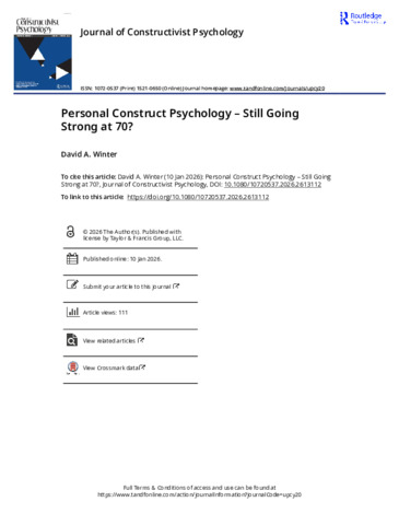 This paper considers the status of personal construct psychology (PCP) 70 years after George Kelly published his magnum opus presenting this approach. A description is provided of the basic tenets of personal construct theory, and the applications of the theory in a range of different settings is reviewed. Limitations of, and challenges that have faced, PCP are considered, including those relating to international growth, relationships with other approaches, methodology, and institutionalization. Possible ways forward are outlined, and an illustration of the potential of personal construct theory and its methodology to address global issues of topical and interdisciplinary concern is provide by considering a research program on perpetrators and victims of extreme violence. It is concluded that personal construct psychology remains healthy and of considerable contemporary relevance, but that it has unfulfilled potential in relation to explicitly addressing political issues.
