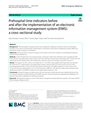 Prehospital time indicators before and after the implementation of an electronic information management system (EIMS) : a cross-sectional study