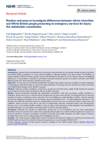 Routine outcomes to investigate differences between ethnic minorities and White British people presenting to emergency services for injury : the stakeholder consultation