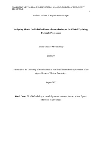 | Keywords | Mental health difficulties, DClinPsy, Parents, Trainee Clinical Psychologists |