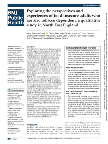 Exploring the perspectives and experiences of food-insecure adults who are also tobacco dependent: a qualitative study in North East England