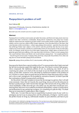 | Keywords | panpsychism, problem of evil, theism, consciousness, god |