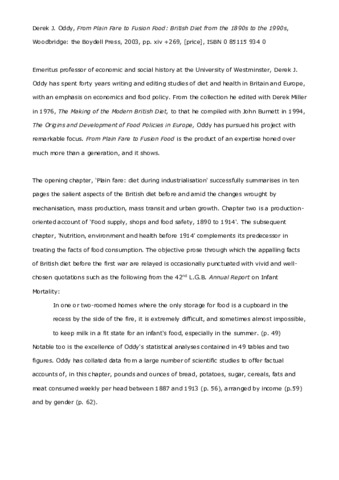 Emeritus professor of economic and social history at the University of Westminster, Derek J. Oddy has spent forty years writing and editing studies of diet and health in Britain and Europe, with an emphasis on economics and food policy. From the collection he edited with Derek Miller in 1976, The Making of the Modern British Diet, to that he compiled with John Burnett in 1994, The Origins and Development of Food Policies in Europe, Oddy has pursued his project with remarkable focus. From Plain Fare to Fusion Food is the product of an expertise honed over much more than a generation, and it shows.