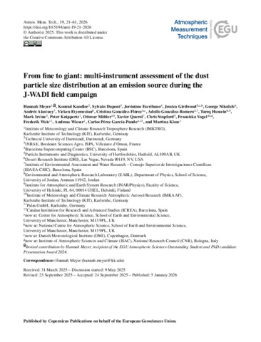 From fine to giant : Multi-instrument assessment of the dust particle size distribution at an emission source during the J-WADI field campaign