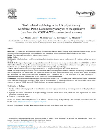 Work related well-being in the UK physiotherapy workforce: Part 2. Documentary analyses of the qualitative data from the YOURvieWS cross-sectional e-survey