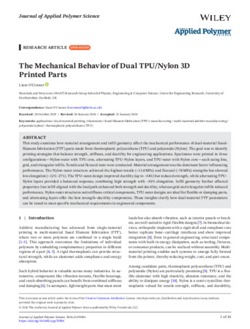 The Mechanical Behavior of Dual TPU/Nylon 3D Printed Parts
